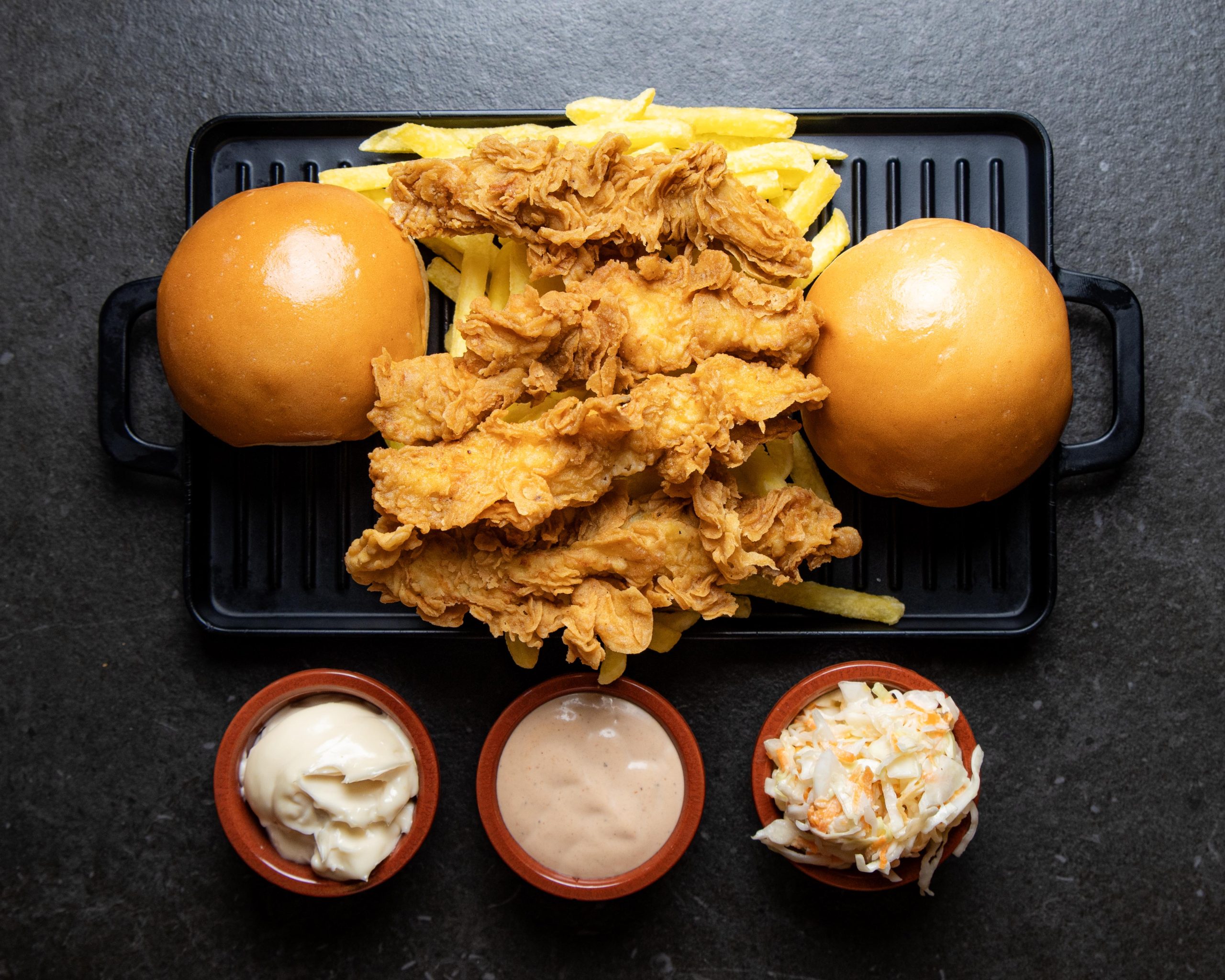 4 قطع دجاج كريسبي – بطاطا مقلية – كول سلو – كريم ثوم – 2 قطعة خبز