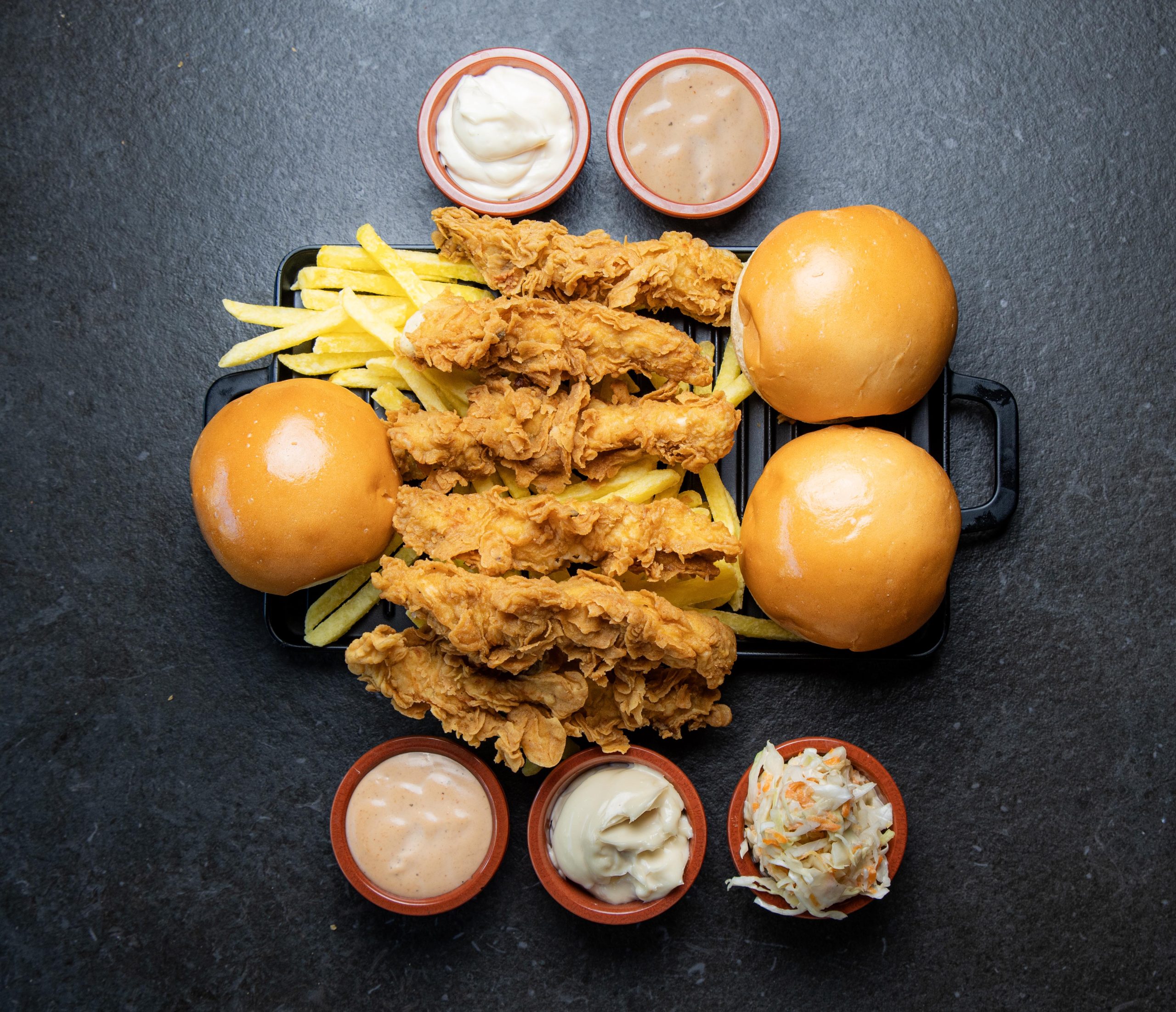 6 Chicken Crispy Pieces – French Fries – Coleslaw – Garlic Cream – 3 Pieces of Bread |