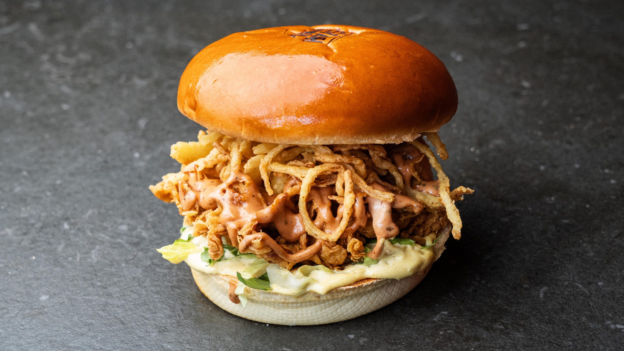 Fried Chicken Breast – BBQ Ranch Sauce – Crispy Onion – Mayo Onion Sauce – Lettuce