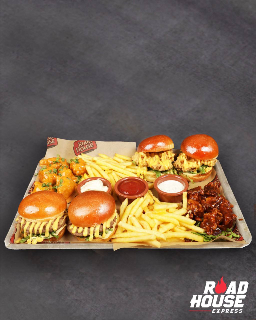 ٢ سلايدر لحمة – ٢ سلايدر دجاج – داينيميت تشيكن – بوفالو بايتس – بطاطا – ٢ كولا