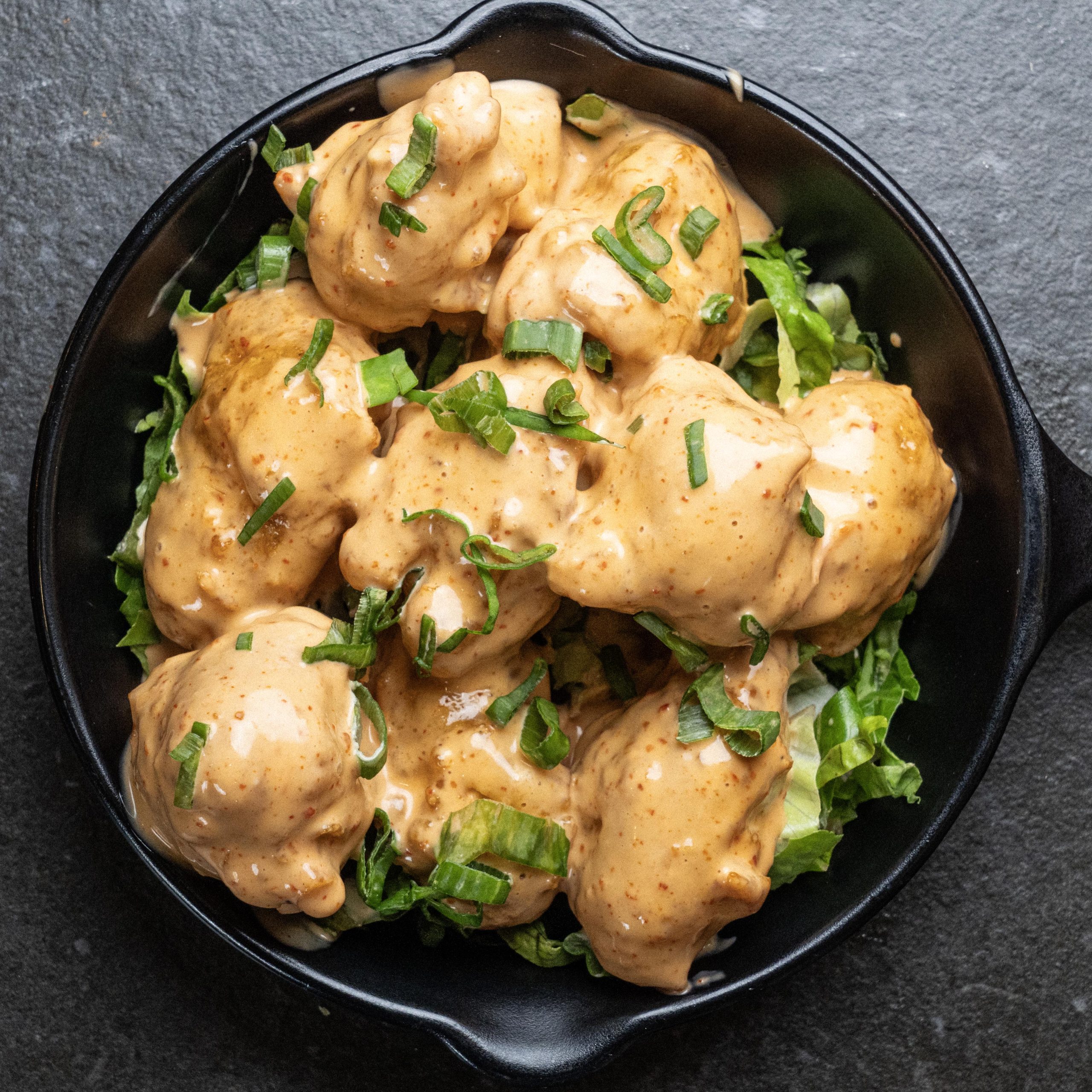 قطع دجاج بونلس مقلية مع صوص الدايناميت