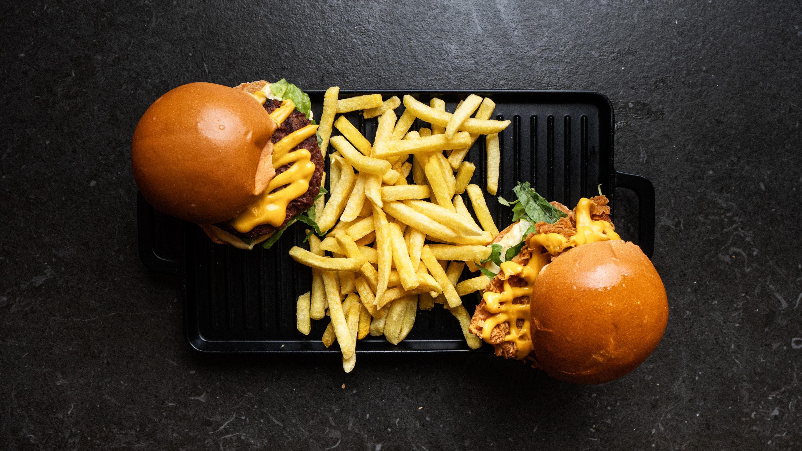 Mini Chicken Burger – Mini Beef Burger – Mayo Onion Sauce – Cheddar. Served with Fries